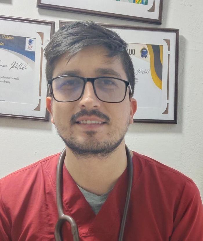 Médico Veterinario Zootecnista, egresado de la Universidad Corhuila (Colombia). Cuenta con formación profesional en ecografía veterinaria, habiendo participado en diplomados de ecografía abdominal y en talleres de ecografía Doppler.