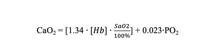 La cantidad de oxígeno presente en la sangre arterial se puede calcular con la fórmula de contenido arterial de oxígeno (Fórmula 2).