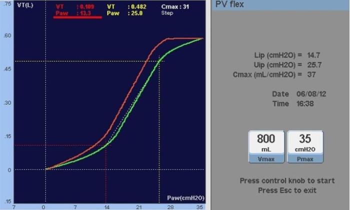 Las curvas presión-volumen del sistema respiratorio muestran que la Csr varía en diferentes partes de la curva. Al analizar esta curva, pueden detectarse dos puntos de inflexión: un punto de inflexión inferior y otro de inflexión superior (Figura 1).