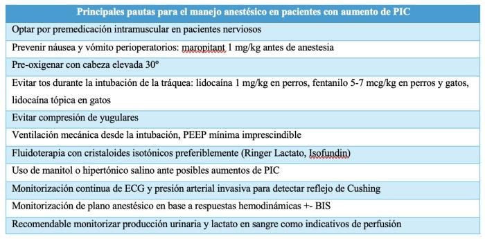 Manejo anestésico y cuidados del perro y gato con aumento de presión intracraneal