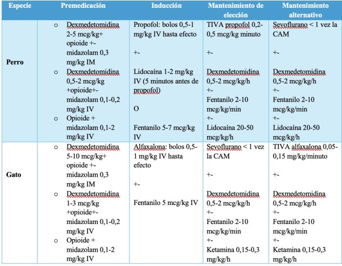 Protocolo anestésico — elección de fármacos