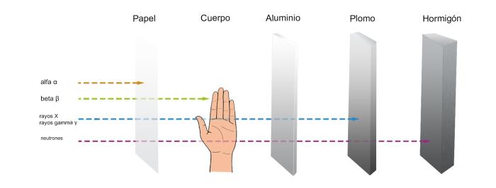 La radiación ionizante, según su energía y longitud de onda, tiene un poder de penetración (Figura 2).