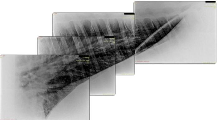 Las radiografías torácicas son una herramienta diagnóstica de gran utilidad para la evaluación de las vías bajas. Permiten identificar consolidaciones pulmonares, masas, enfisema, fracturas costales o acumulación de líquido pleural. En potros y caballos jóvenes, la radiografía es especialmente útil para el diagnóstico de neumonía bacteriana o abscesos pulmonares.