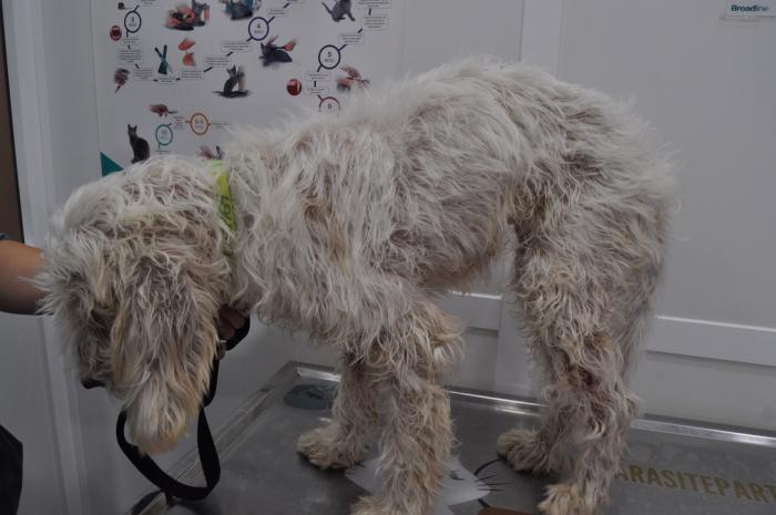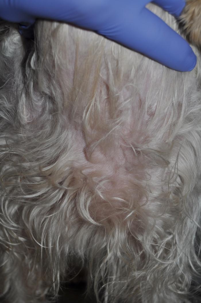 Cepillado del pelo; no se encontraron heces de pulga ni parásitos externos.
