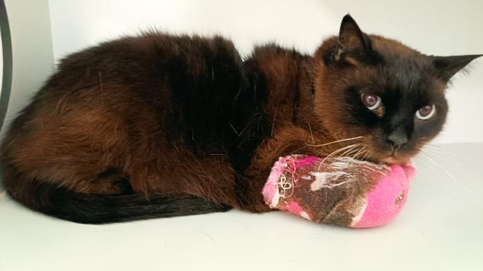 Se presentó en nuestro hospital un gato de raza siamés de catorce años y medio de edad y 6 kilos de peso para valorar una lesión que presentaba en el carpo de la extremidad anterior derecha (Figura 1).