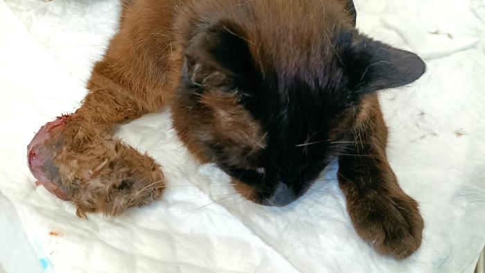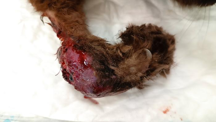 Amputación del miembro torácico en un gato con deformidad congénita del carpo