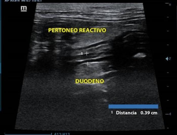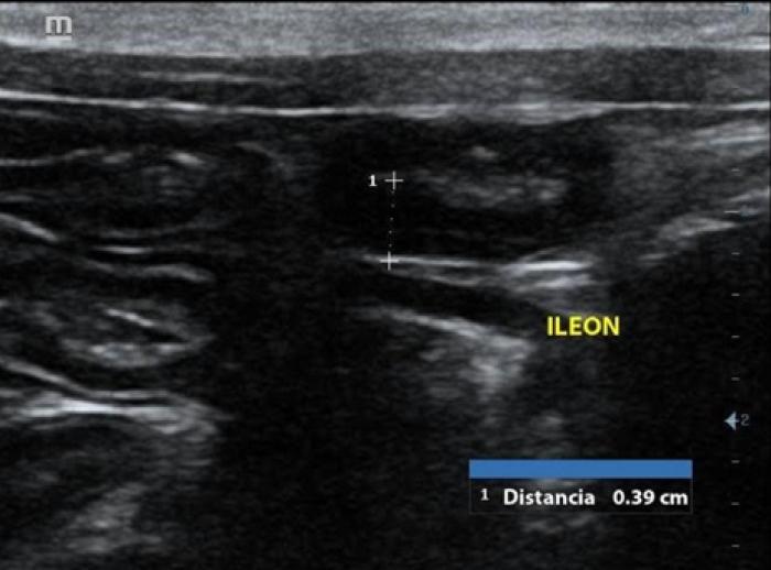 | Ultrasonido abdominal en donde se realicen mediciones del grosor de la pared del intestino |