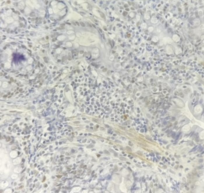 Se realiza inmunohistoquímica de la sección del íleon en la cual la integración de la inmunorreacción disminuye la posibilidad de una lesión neoplásica (linfoma) y puede ser compatible con una enteropatía crónica (como enfermedad inflamatoria intestinal) (Figuras 15 y 16).
