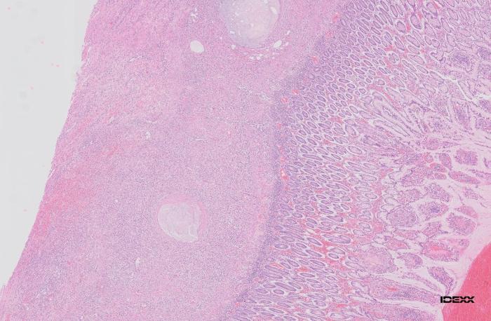 La linfangitis lipogranulomatosa es una forma poco frecuente de enteropatía crónica en perros, caracterizada por engrosamientos focales o multifocales de la pared intestinal secundarios a la formación de lesiones granulomatosas provocadas por la fuga crónica de linfa a través de los vasos linfáticos. Aunque su etiología no está completamente esclarecida, no se ha identificado ningún agente infeccioso predisponente yse ha propuesto una causa multifactorial con posible predisposición genética1.