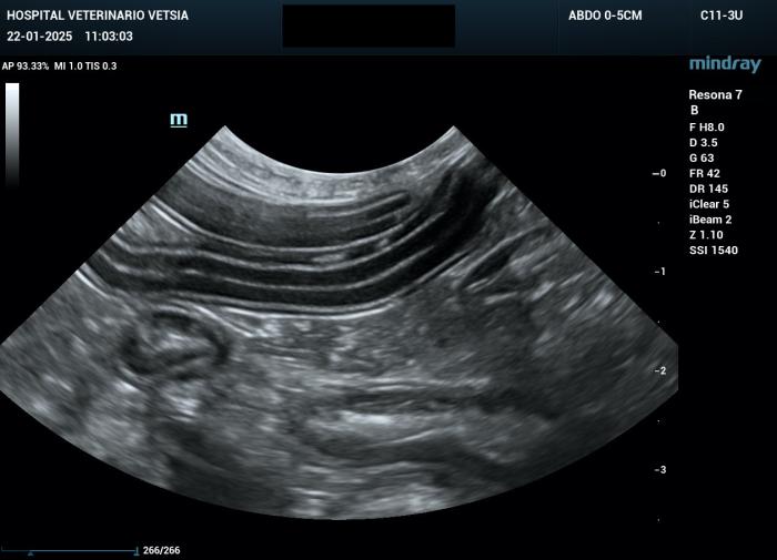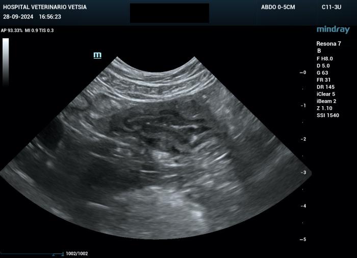 Se presentó en consulta un perro Mestizo, macho castrado de tres años de edad, correctamente vacunado y desparasitado, con un cuadro agudo de apatía, anorexia y vómitos de dos días de evolución (Figura 1). No presentaba antecedentes clínicos relevantes.