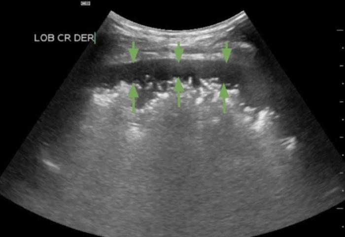 En todo pulmón aireado es vital la visualización del signo de deslizamiento (movimiento de izquierda a derecha originado por la movilización de la pleura parietal sobre la visceral).