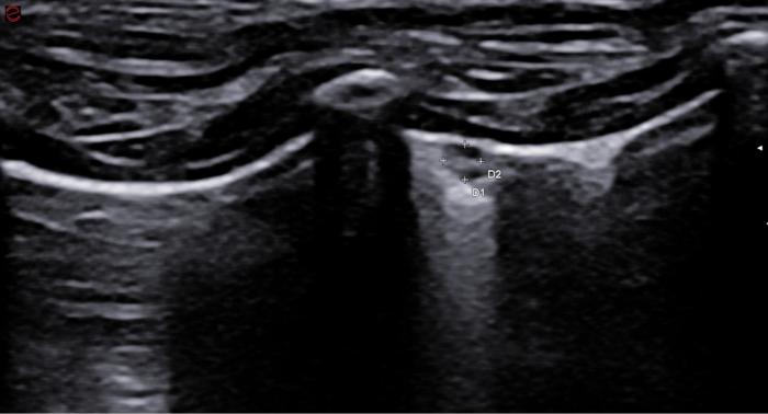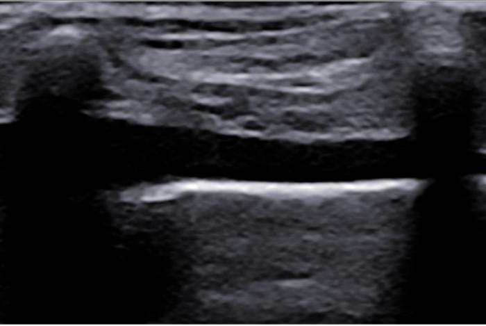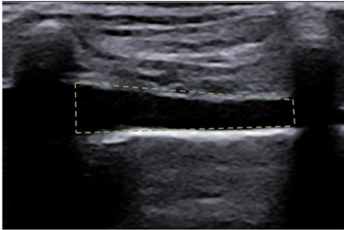 La LP es fina (por lo general inferior a 0.5 mm), regular y a pesar de tener dos componentes, la veremos como una única línea hiperecogénica.