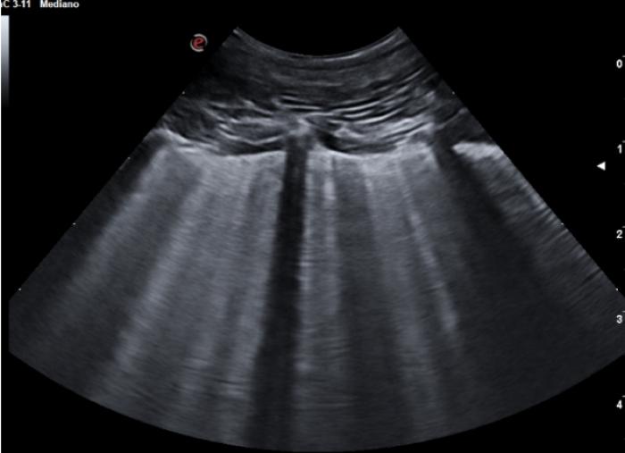 | Líneas B | Cohetes hiperecogénicos verticales que nacen de la línea pleural y llegan al fondo. | Edema intersticial o alveolar (sustitución de aire por líquido/tejido). | Edema cardiogénico (más simétricas y en área perihiliar) o Neumonía (desorganizadas y multifocales). |