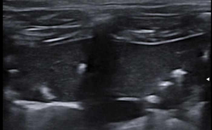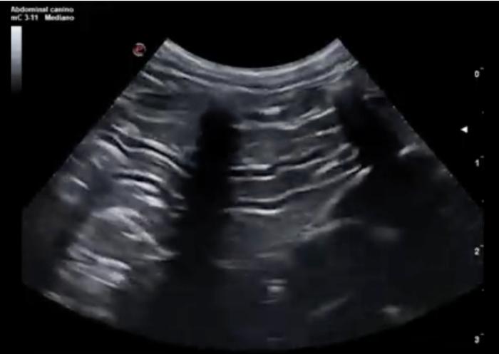 | Signo de banda | Línea hipoecogénica gruesa justo bajo la pleura (hemorragia)con aire desorganizado adyacente (enfisema). | Engrosamiento pleural o fibrosis. | Torsión lóbulo pulmonar (lóbulos craneales o medio dch) o hemorragia pulmonar (áreas ventrales de los lóbulos y bilateral). |